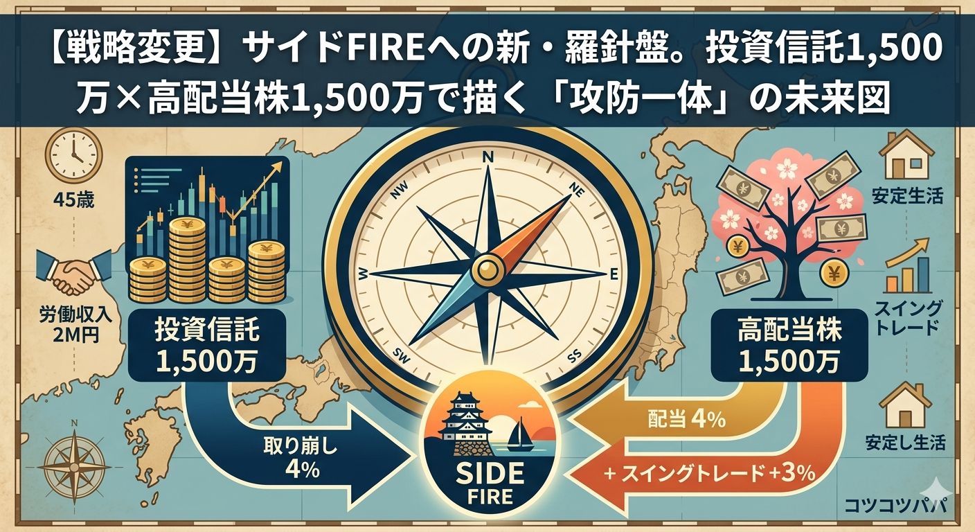 【戦略変更】サイドFIREへの新・羅針盤。投資信託1,500万×高配当株1,500万で描く「攻防一体」の未来図